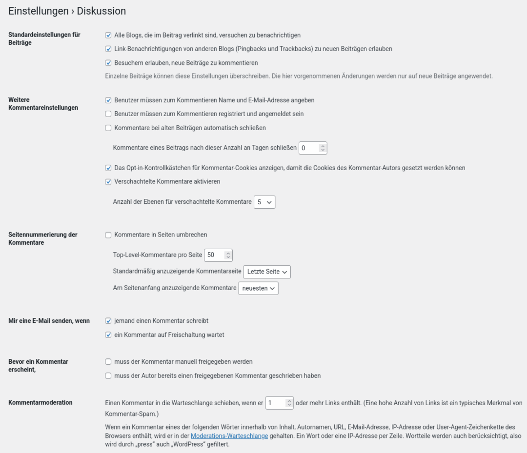 - Diskussion: Kommentare unter Blogartikeln sind wichtig und können interessente Gespräche eröffnen. Deshalb lasse ich Kommentare auf meinem Blog zu, aber unter bestimmten Bedingungen, die unter dem Menüpunkt einstellbar sind.