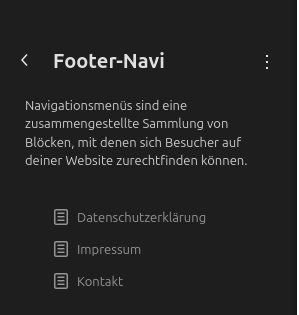 Du kannst es dir auch einfach machen, indem du die Unterseite „Impressum“ im Footer-Menü einbindest, das dann auf jeder einzelnen deiner Unterseiten angezeigt wird. Der Footer ist eine zusätzliche Menüzeile am unteren Rand jeder Webseite.